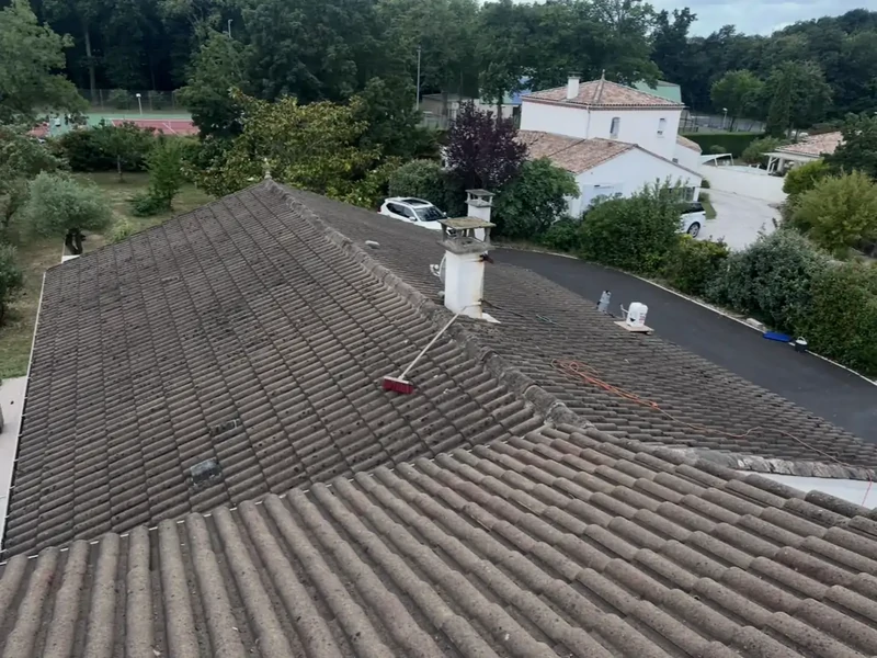 Nos services incluent un nettoyage complet du toit, l’élimination des mousses, lichens et autres salissures, ainsi que l’application de traitements anti-mousse et hydrofuges adaptés. Ces interventions permettent de préserver l’étanchéité de la toiture, de limiter la repousse des végétaux et de maintenir l’esthétique de votre maison année après année.