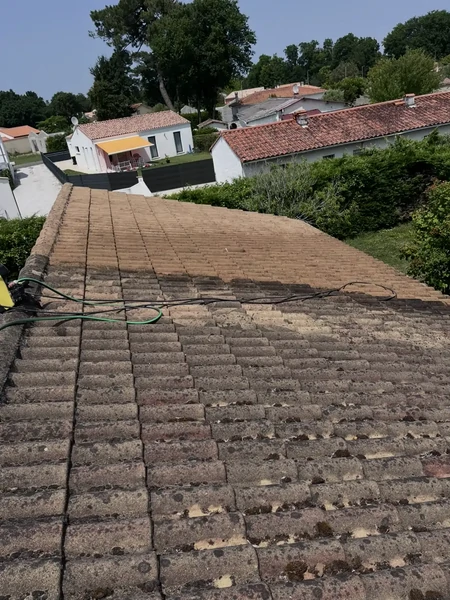 Nous réalisons un entretien complet de votre toit : élimination des mousses, lichens et dépôts, nettoyage à pression contrôlée et application d’un traitement anti-mousse et hydrofuge pour protéger durablement votre toiture. Ces interventions permettent d’éviter les infiltrations, de prolonger la durée de vie des matériaux et de préserver l’esthétique de votre maison face aux conditions climatiques et aux embruns de la côte charentaise.