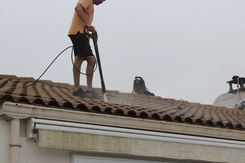 Nos prestations incluent le nettoyage complet de votre toit, le retrait des mousses et lichens, ainsi que l’application de traitements anti-mousse et hydrofuge longue durée. Grâce à des produits professionnels et à des techniques maîtrisées, nous éliminons les impuretés sans abîmer les matériaux, qu’il s’agisse de tuiles, d’ardoises, de fibrociment ou de zinc. Cette approche préventive protège votre habitation contre les infiltrations et conserve l’aspect esthétique de votre toiture face aux intempéries locales.